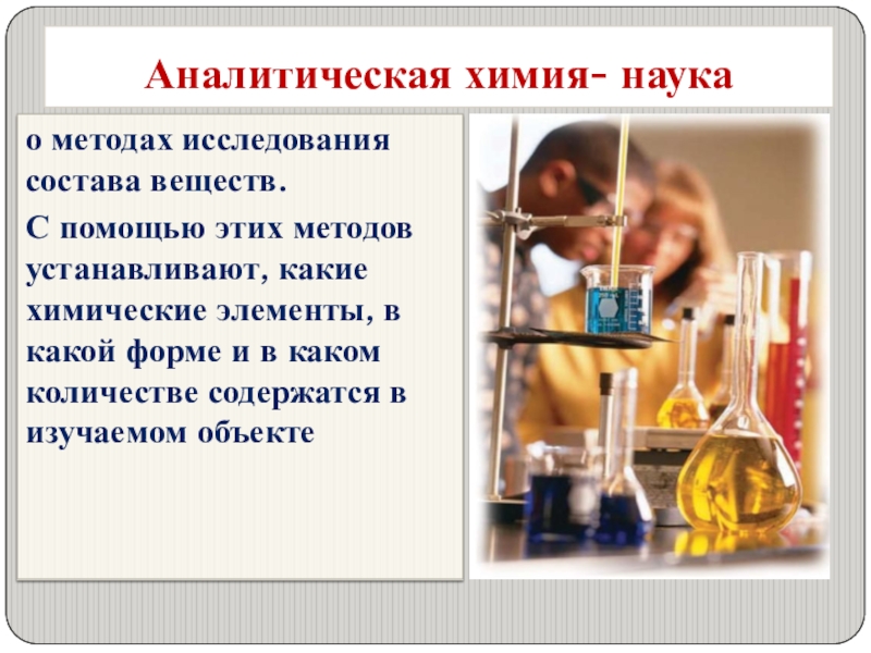 Слайд 211.Аналитическая химия это: 1) наука о веществе; 2) наука о методах