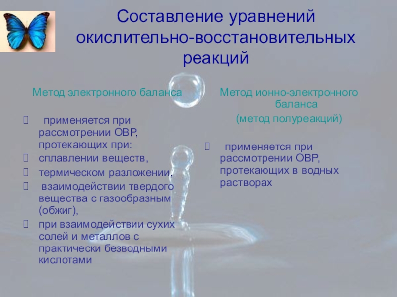 применяется при рассмотрении ОВР, протекающих в водных растворах