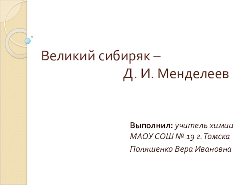 Выполнил: учитель химии МАОУ СОШ № 19 г. Томска
