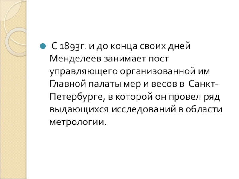 С 1893г. и до конца своих дней Менделеев занимает пост