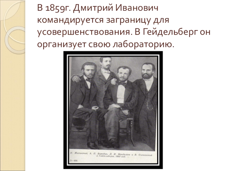 Слайд 16В 1859г. Дмитрий Иванович командируется заграницу для усовершенствования. В Гейдельберг он