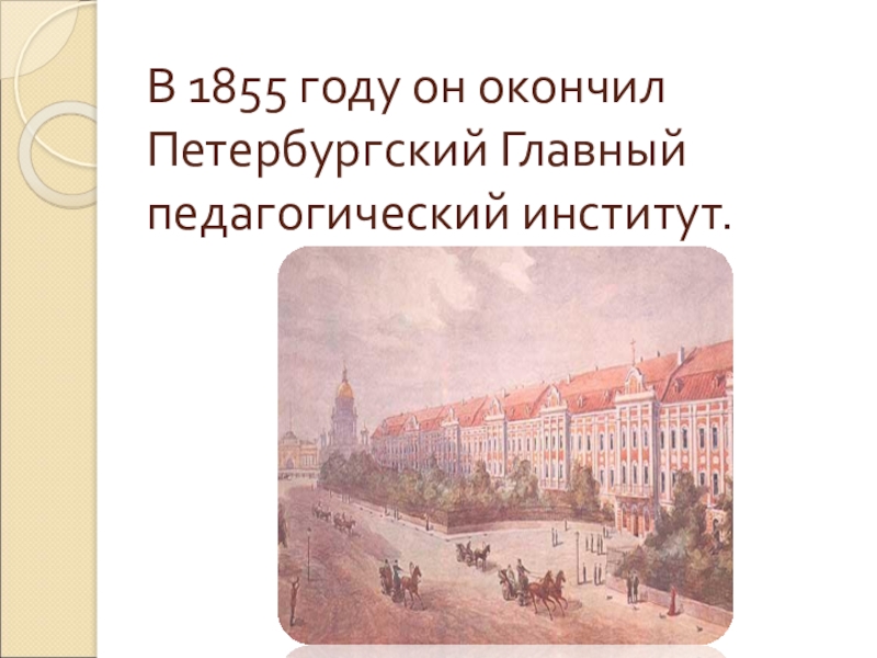 Слайд 11В 1855 году он окончил Петербургский Главный педагогический институт.