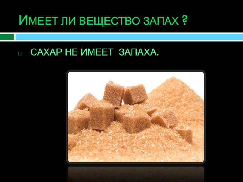 ИМЕЕТ ЛИ ВЕЩЕСТВО ЗАПАХ ? САХАР НЕ ИМЕЕТ ЗАПАХА.