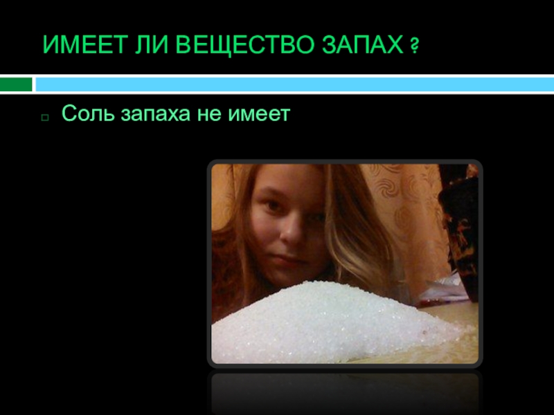 ИМЕЕТ ЛИ ВЕЩЕСТВО ЗАПАХ ?Соль запаха не имеет