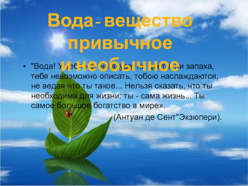 Вода- вещество привычное