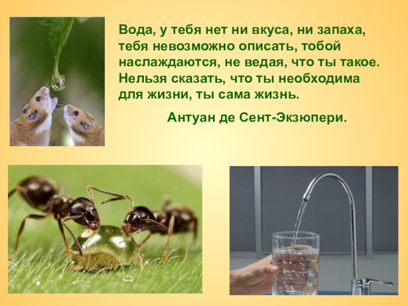 Слайд 17Вода, у тебя нет ни вкуса, ни запаха,