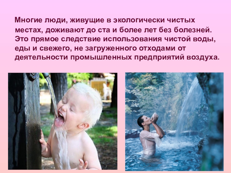 Слайд 19 Многие люди, живущие в экологически чистых местах, доживают до