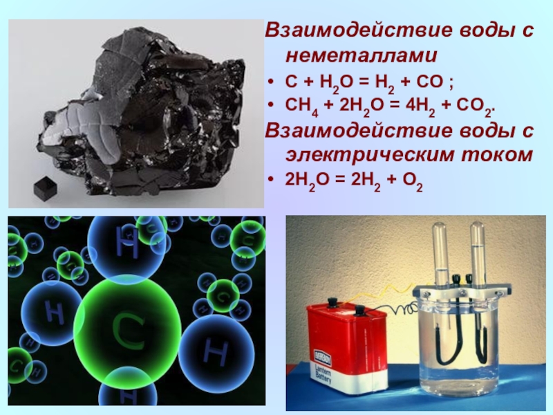 Слайд 14Взаимодействие воды с неметаллами