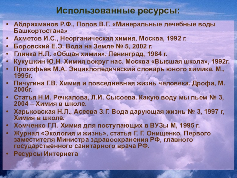 Абдрахманов Р.Ф., Попов В.Г. «Минеральные лечебные воды Башкортостана»