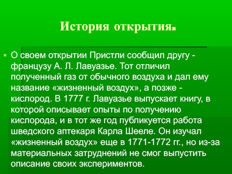 О своем открытии Пристли сообщил другу - французу А. Л.