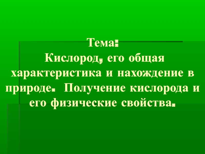 Кислород, его общая характеристика и нахождение в природе. Получение