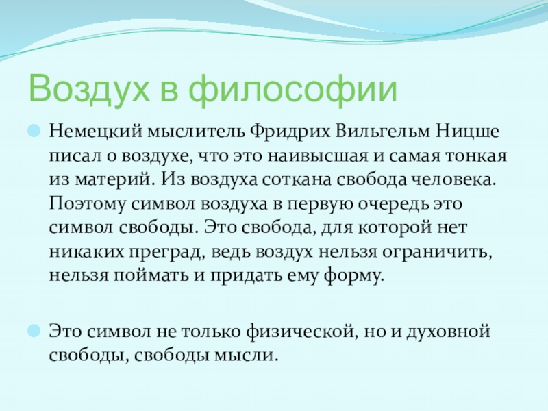 Немецкий мыслитель Фридрих Вильгельм Ницше писал о воздухе, что