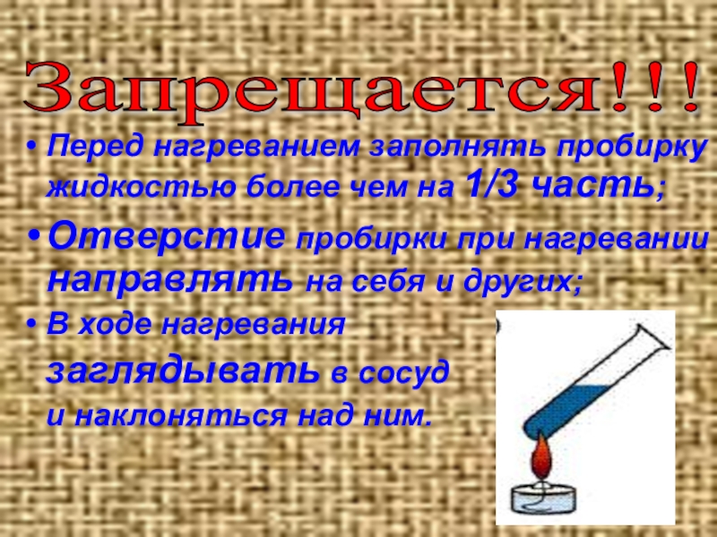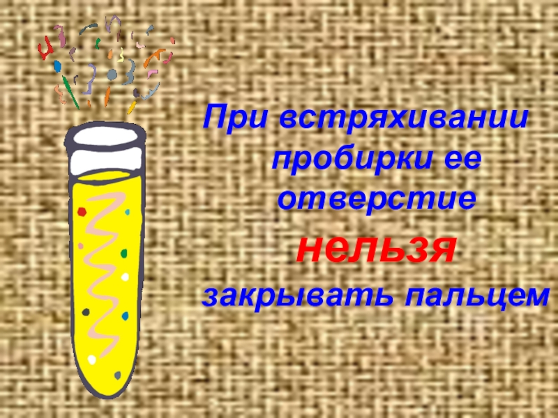 Слайд 17При встряхивании пробирки ее отверстие нельзя закрывать пальцем
