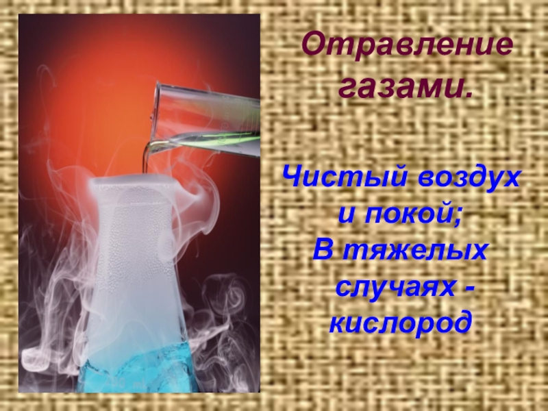 Отравление газами.Чистый воздух и покой;В тяжелых случаях - кислород