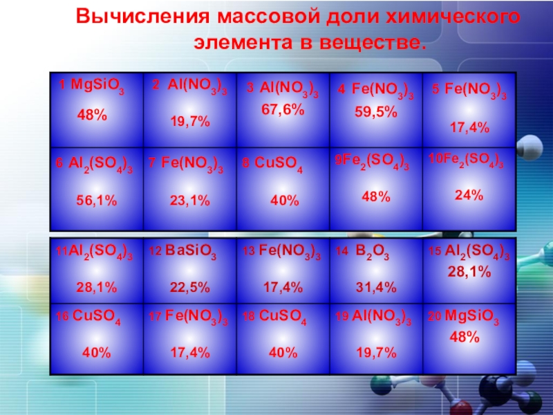 Презентация, доклад по химии на тему Вычисление массовой доли элемента