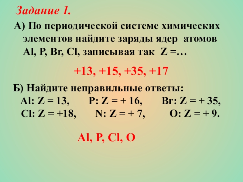 Al: Z = 13, P: Z = + 16, Br: Z = + 35,