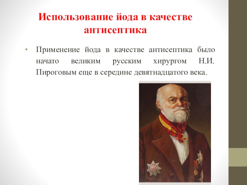 Слайд 23 Сто лет назад пятипроцентный спиртовой раствор молекулярного йода был предложен