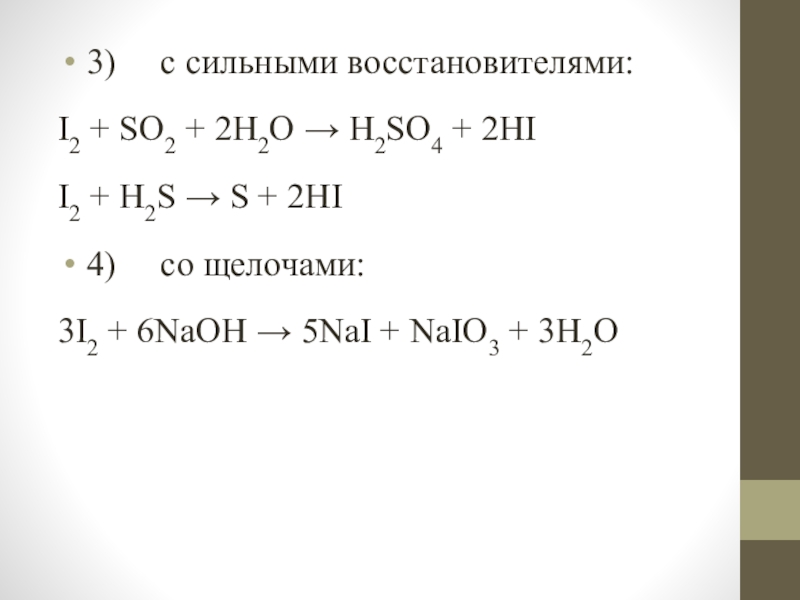 I2 + SO2 + 2H2O → H2SO4 + 2HI