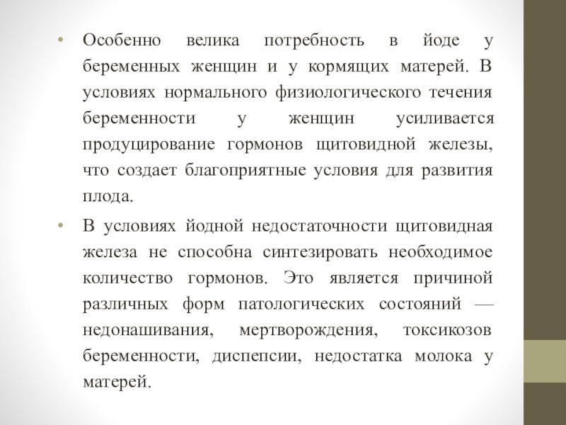 Слайд 21Особенно велика потребность в йоде у беременных женщин и у кормящих