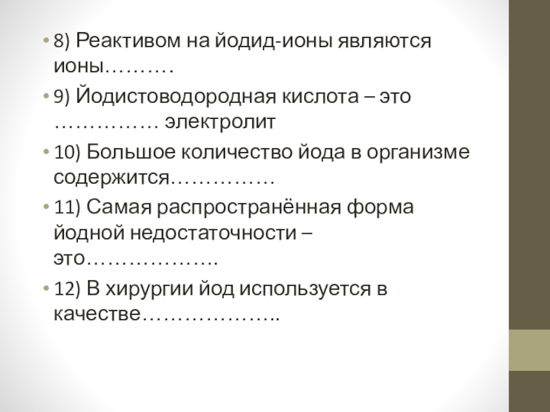 Слайд 278) Реактивом на йодид-ионы являются ионы……….