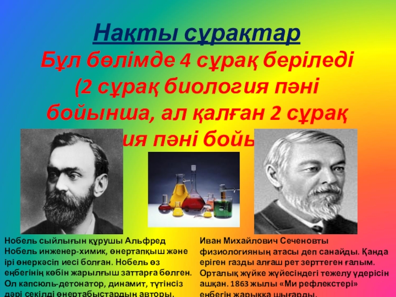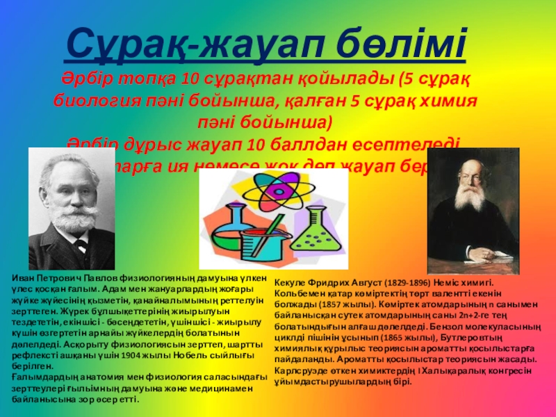 Иван Петрович Павлов физиологияның дамуына үлкен үлес қосқан ғалым. Адам мен жануарлардың жоғары жүйке жүйесінің қызметін, қанайналымының реттелуін зерттеген. Жүрек бұлшықеттерінің жиырылуын тездететін, екіншісі - бәсеңдететін, үшіншісі - жиырылу күшін өзгертетін арнайы жүйкелердің болатынын дәлелдеді. Асқорыту физиологиясын зерттеп, шартты рефлексті ашқаны үшін 1904 жылы Нобель сыйлығы берілген.