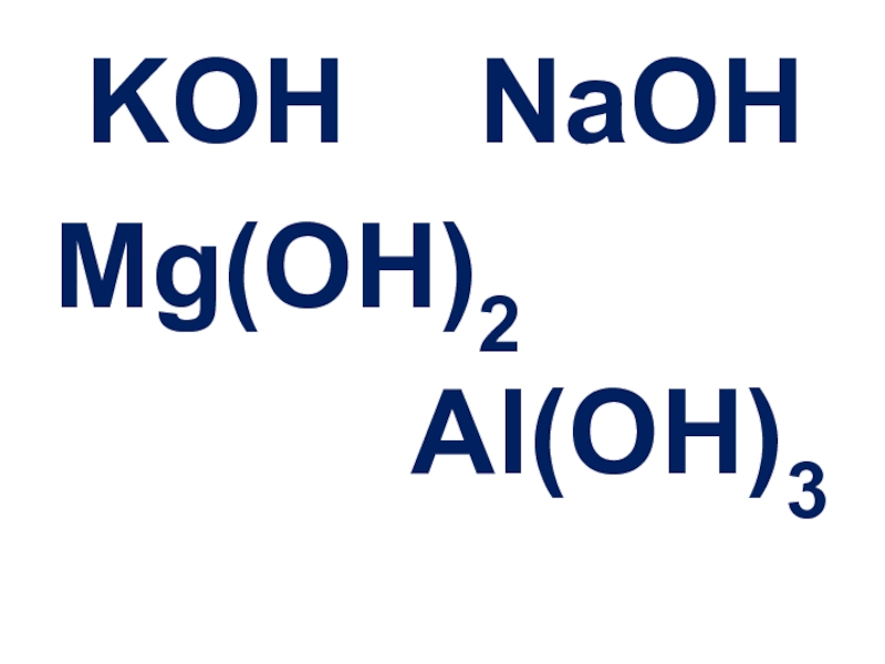 KOН  NaOHMg(OH)2      Al(OH)3