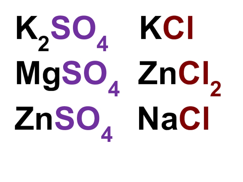 K2SO4   KClMgSO4  ZnCl2ZnSO4  NaCl