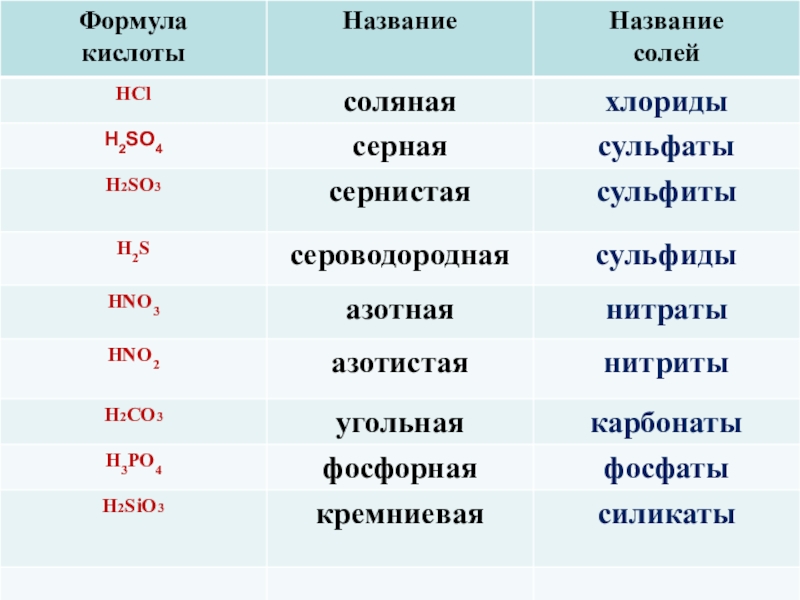Г) H2SiO3 4. соляная кислота