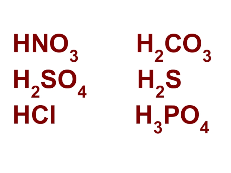 HNO3    H2CO3H2SO4    H2SHCl      H3PO4