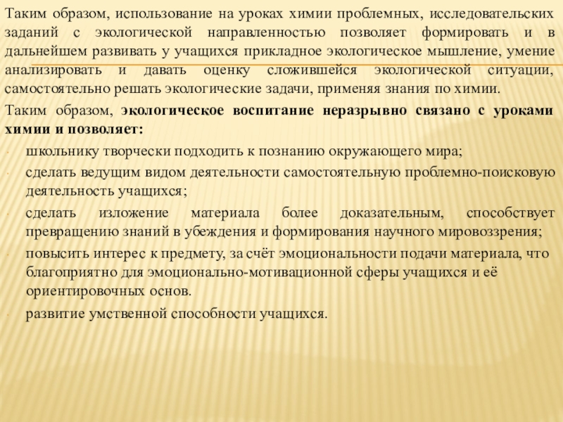 Таким образом, экологическое воспитание неразрывно связано с уроками химии и позволяет: