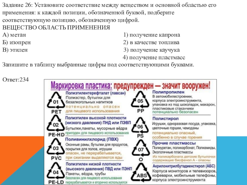 Слайд 11Задание 26: Установите соответствие между веществом и основной областью его