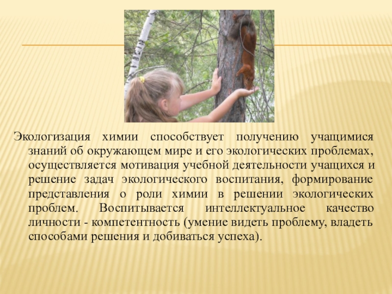 Слайд 43Экологизация химии способствует получению учащимися знаний об окружающем мире и его