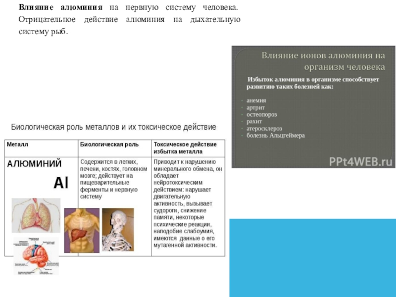 Слайд 28Влияние алюминия на нервную систему человека. Отрицательное действие алюминия на дыхательную