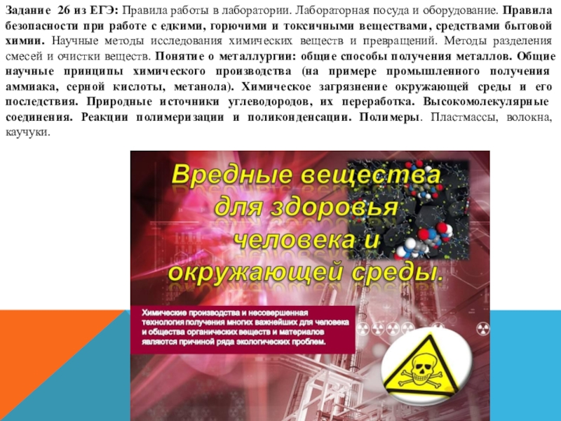 Слайд 10Задание 26 из ЕГЭ: Правила работы в лаборатории. Лабораторная посуда и