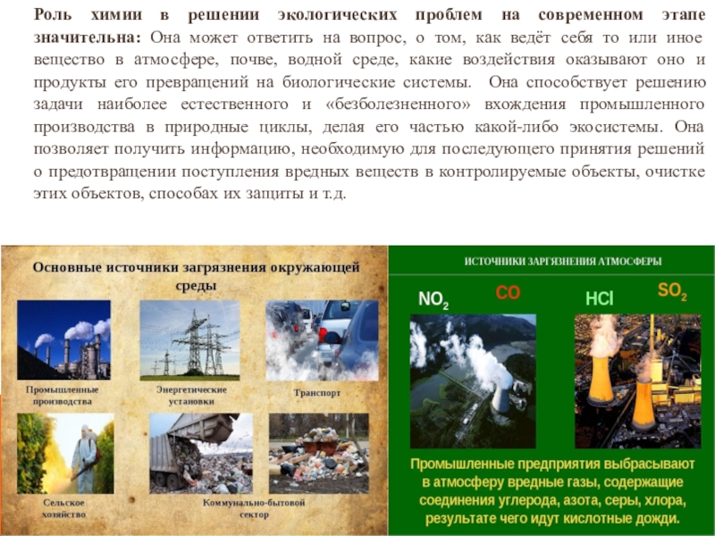 Слайд 6Роль химии в решении экологических проблем на современном этапе значительна: Она