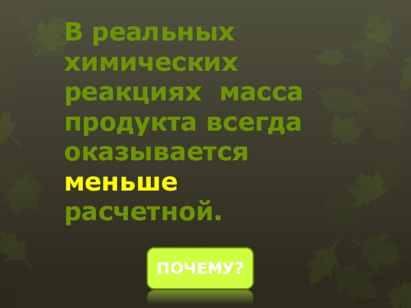 Количество продукта, рассчитанное по уравнению реакции, - теоретический выход, соответствует 100%.