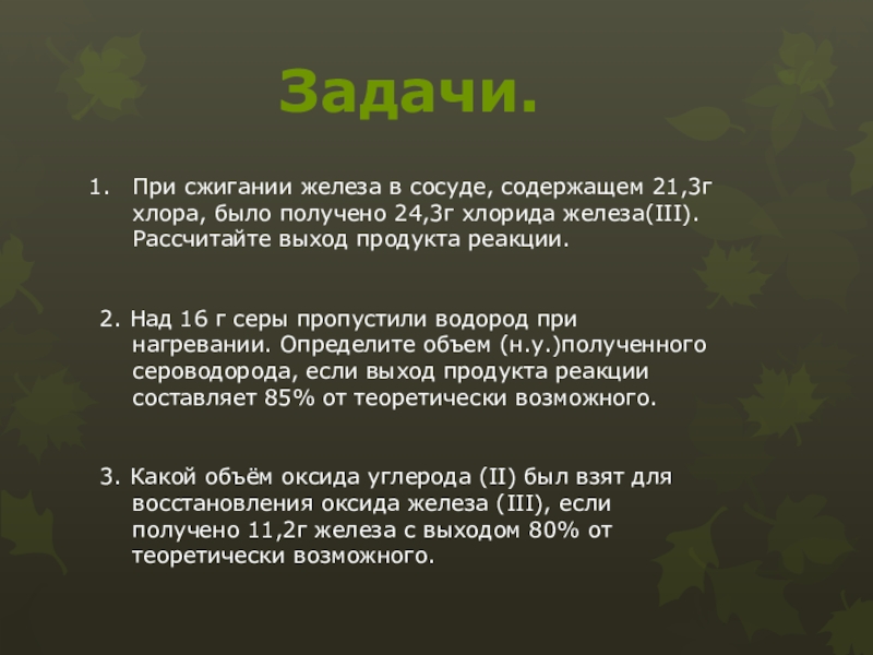 Расчет массы исходного вещества, если известны масса продукта реакции и выход продукта.
