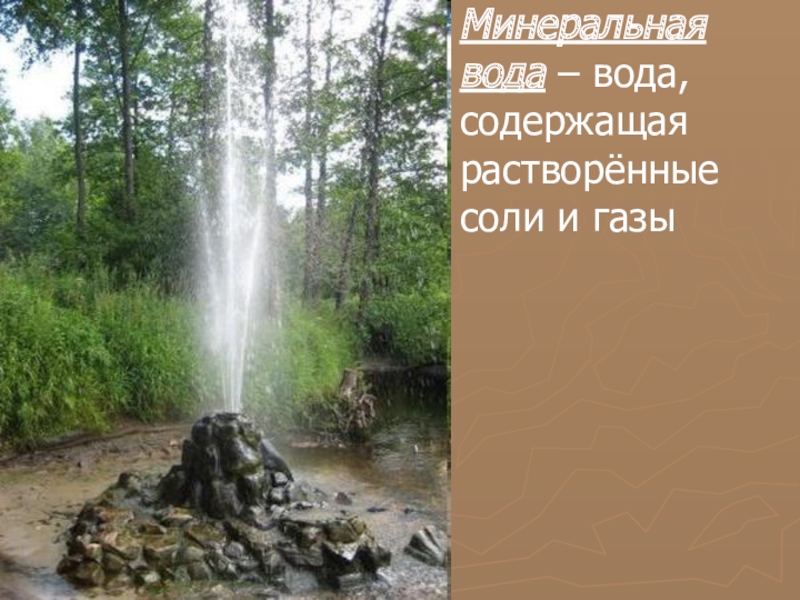 Минеральная вода – вода, содержащая растворённые соли и газы