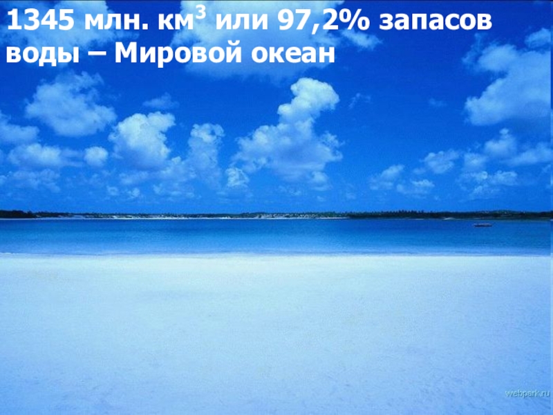1345 млн. км3 или 97,2% запасов воды – Мировой океан