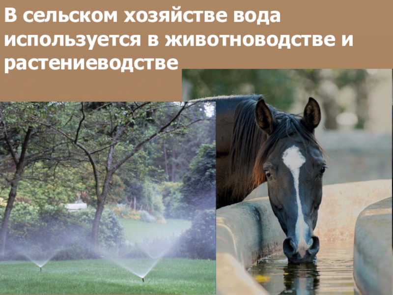 В сельском хозяйстве вода используется в животноводстве и растениеводстве
