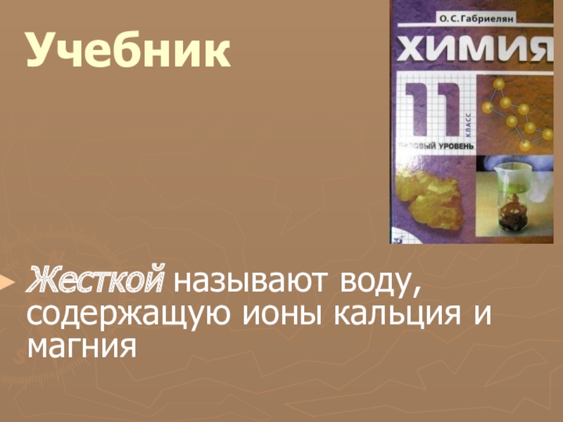 УчебникЖесткой называют воду, содержащую ионы кальция и магния