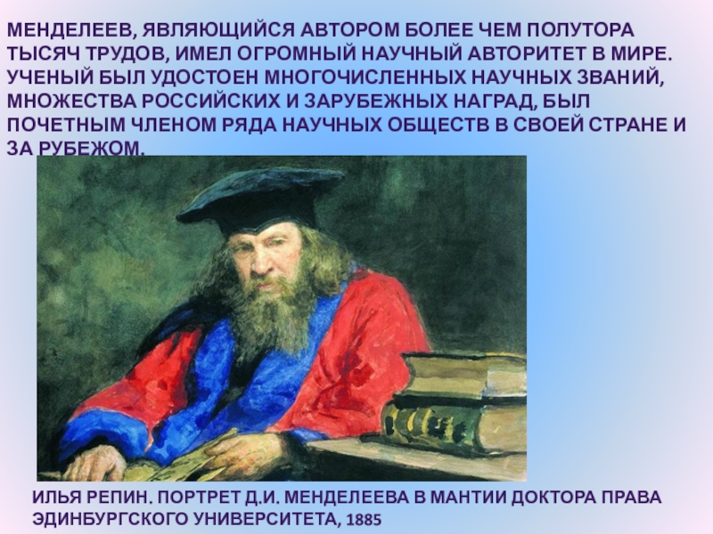 Илья Репин. Портрет Д.И. Менделеева в мантии доктора права Эдинбургского университета, 1885