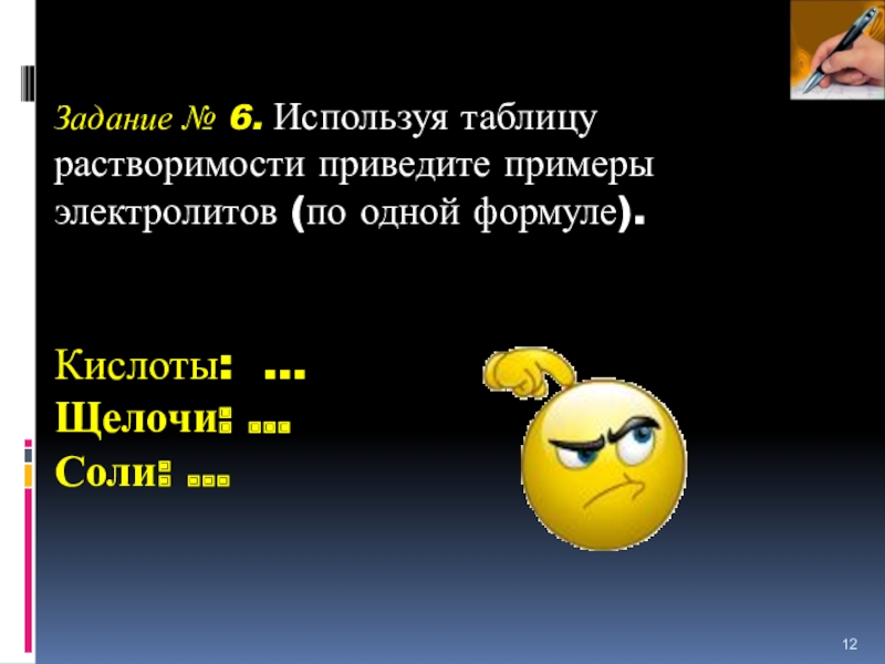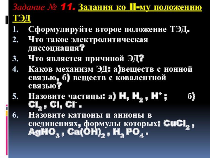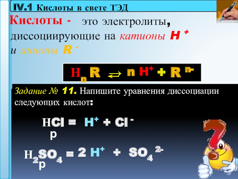 Задание № 11. Напишите уравнения диссоциации следующих кислот: