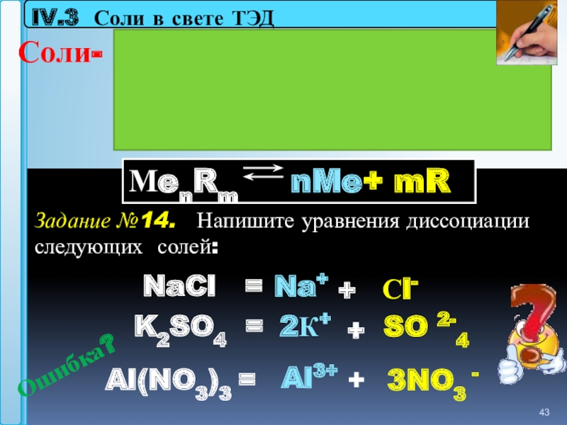 Задание №14. Напишите уравнения диссоциации следующих солей: