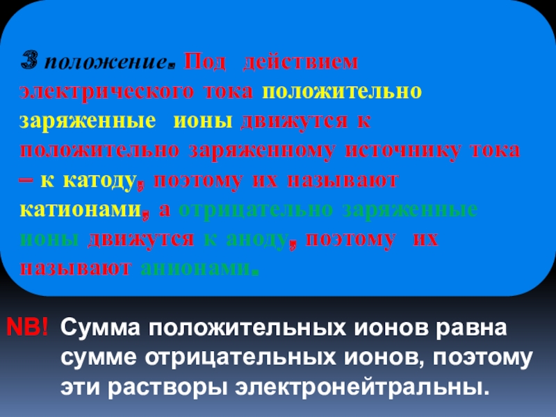 Сумма положительных ионов равна сумме отрицательных ионов, поэтому эти растворы электронейтральны.