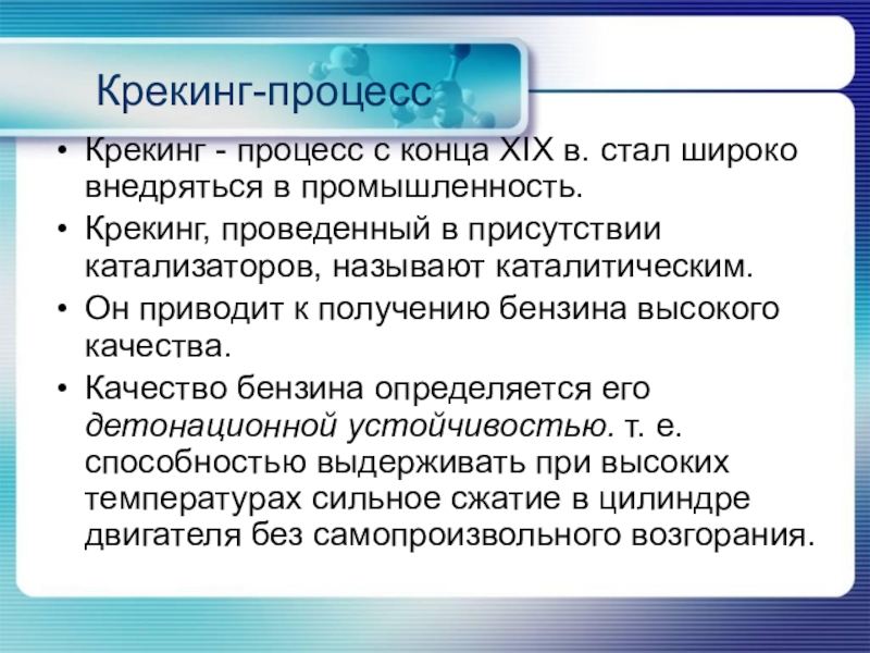 Крекинг - процесс с конца XIX в. стал широко внедряться в