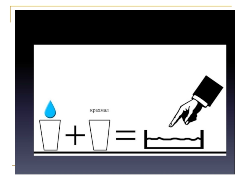 Слайд 16Полученная жидкость льётся, как обычная, но при давлении твёрдая