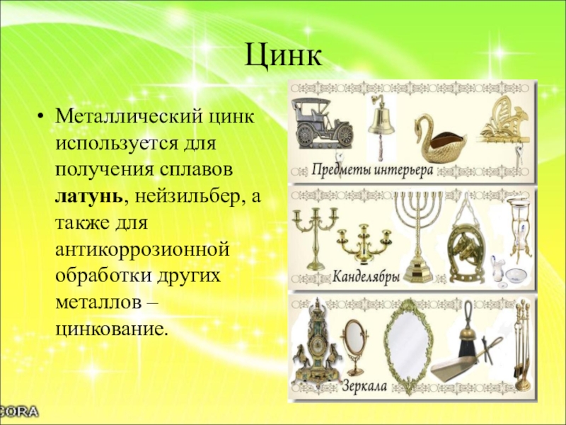 Металлический цинк используется для получения сплавов латунь, нейзильбер, а также для