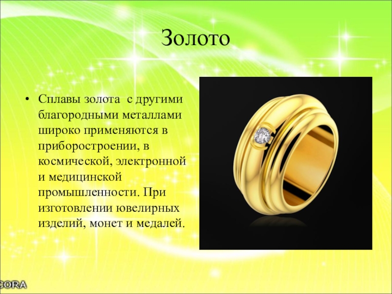 Золото и его сплавы используются для золочения, изготовления ювелирных изделий и