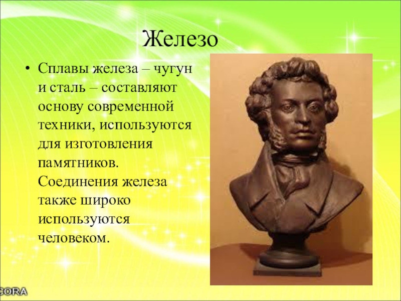 используются для изготовления памятников. Соединения железа также широко используются человеком.